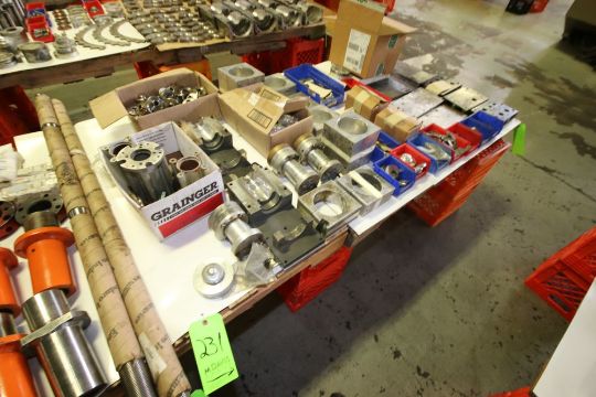 { Group of lots: 226, 227, 228, 229, 230, 231 } Large Assortement of Electra-Form PET Blow Molding Parts, Includes Some Neck Parts, Risers, (1) Mold Set, Blocks, and Box of Pre-Form Holders (BM)