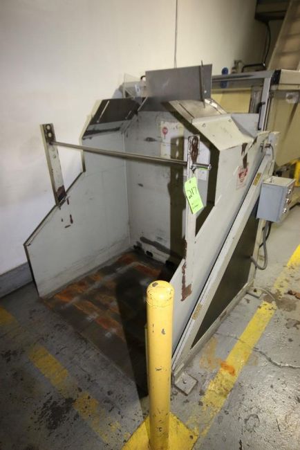 { Group of lots: 216, 217 } Sidel Pre-Form Elevator Conveyor with Hopper, Hopper Dims.: Aprox. 70" L x 40" W x 31" Dia., Aprox. 140" Tall x 12" W Conveyor with Flights (BM)