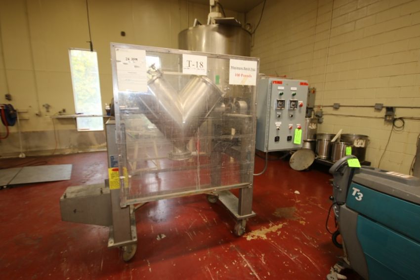 Gemco 3 CFT VBlender, 70 lbs/CFT Material Density, M/N LTO/SLD AGIT BLND, S/N B92405, with 1 hp Motor, 208-230/460 Volts, Mounted on S/S Portable Frame & Mounted Control Panel, 427 Hours