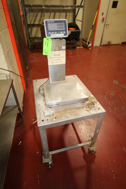 Mettler Toledo Digital Platform Scale, M/N BBA, S/N B633882505, 100 lb. Capacity, 100/200 Volts, with 12" L x 16" W S/S Platform, with Mounte on S/S Portable Cart