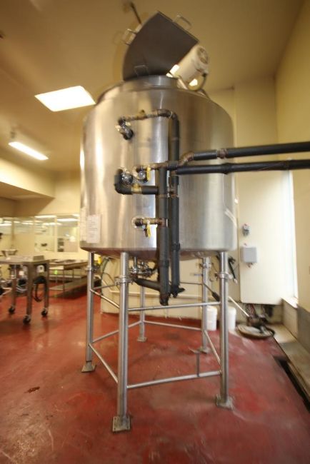 Lee 1,000 Gal. Variable Speed S/S Processor, M/N 1000UDBT2, S/N B3880A1, 125 PSI Jacket, 4357 National Board Number, Dish Bottom, with Vertical S/S Agitation, with 7.5 hp Agitation Motor, with Side Sweep, Mounted on S/S Legs