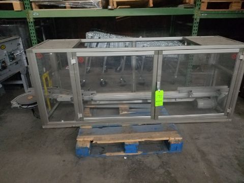Enclosed Plexi-Glass Conveyor, Aprox. 84" L x 2-1/2" W Conv. Belt with Drive, with Double Plexi-Glass Hinge Doors (LOCATED IN FT. WORTH, TX--RIG FEE $50.00)