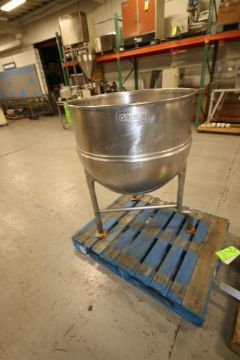 Groen 100 Gal. Jacketed S/S Kettle, Model N 100 SP, BN 17386, with Lee S/S Bridge Agitator, S/S Legs, 100 psi @ 338 degrees (Located in Pittsburgh, PA @ MDG Auction Showroom--$250.00 RIG FEE)