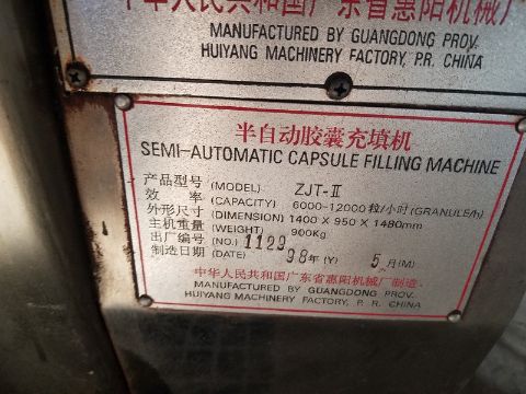 Semi-Automatic Capsule Filling Machine, M/N ZJT-II, S/N 1129, 220 Volts (LOCATED IN FT. WORTH, TX--RIG FEE $125.00)