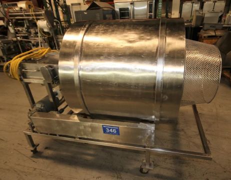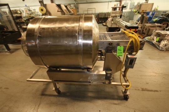 40" L Portable S/S Tumbler with 18" W x 50" L x 40" H Conveyor with S/S Belt & Drive, 8" Product Height(Located at the MDG Showroom in Pittsburgh, PA) (Rigging & Loading Fee: $300) (SOLD SUBJECT TO CONFIRMATION)