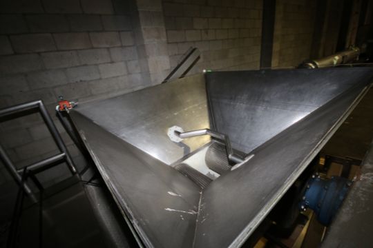 18" S/S Dough Chunker, with 67" W x 67" L x 35" D Hopper, Drive Motors, Operators Deck & Frame, Dim. 11 ft L x 81" W x 70" H, Mounted on Skid (LOAD FEE $350.00)