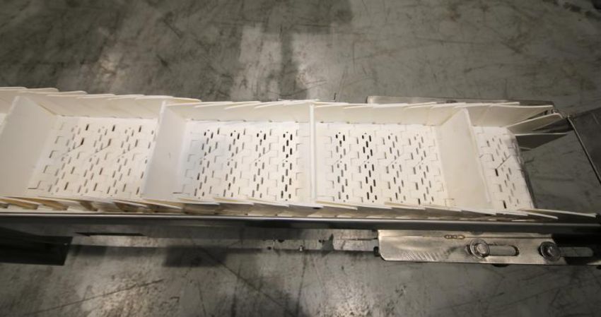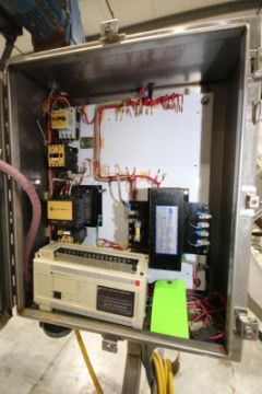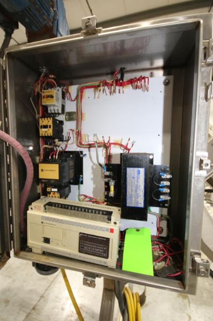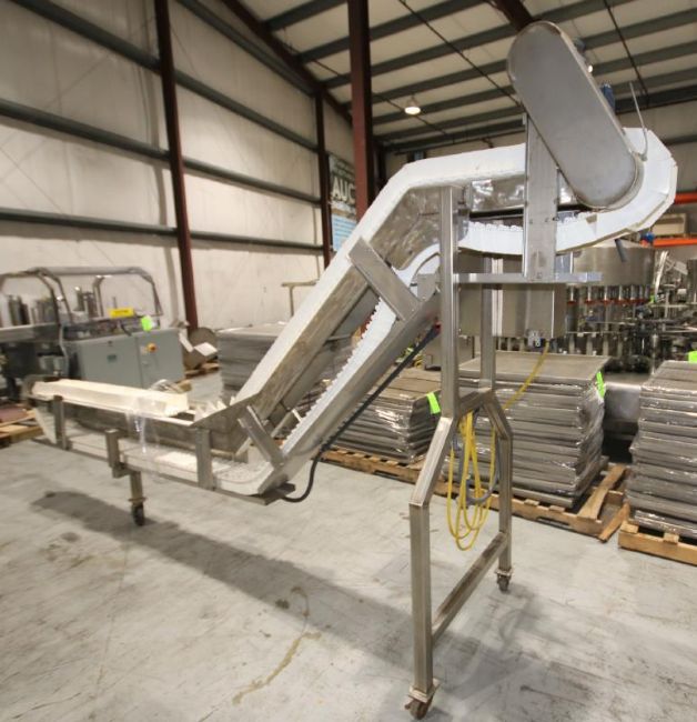 S Configuration Portable S/S Conveyor System, 13 ft 2" L x 30" & 74" H, with 8" W Plastic Belt with 8" Dividers, SEW Drive Motor with Control Box with AB SLC 150 PLC, AB 1 hp Starter & Acme Transformer (Located Pittsburgh, PA) (Rigging & Loading Fee: $350)