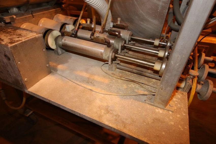 Hind-Bock Triple Piston Filler/Depositor, with (3) 2" Clamp Type Outlets, with S/S Hopper, Mounted on S/S Portable Frame (LOCATED IN BROCKPORT, NY) (NOTE: SUBJECT TO CONFIRMATION)
