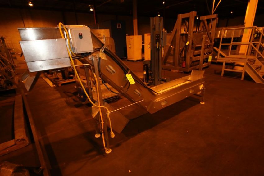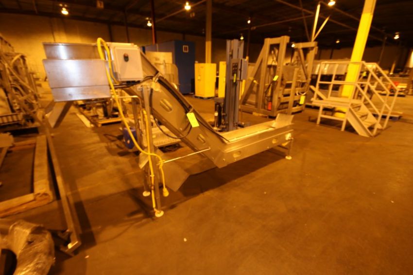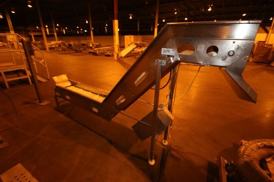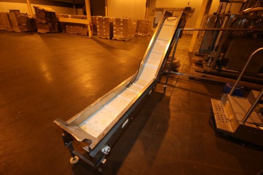 S/S Incline Conveyor with Flights, with S/S Discharge Chute, with 11-1/2" W Belt, with 11-1/2" W Flight Spacing (LOCATED IN BROCKPORT, NY) (NOTE: SUBJECT TO CONFIRMATION)