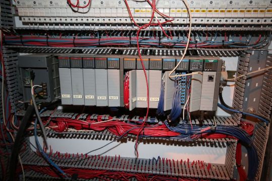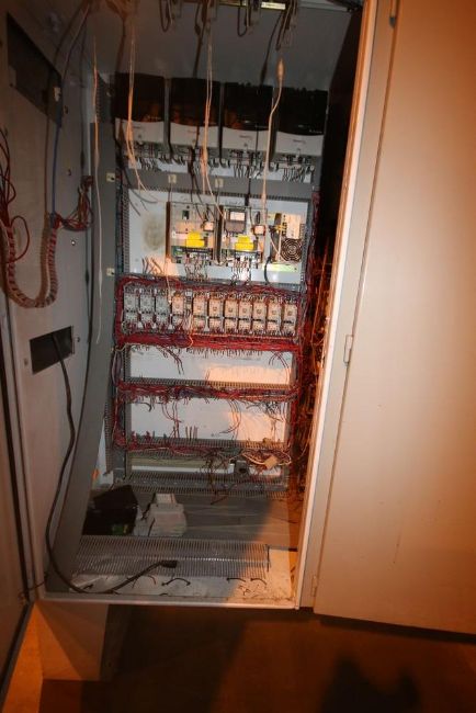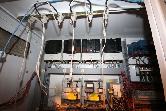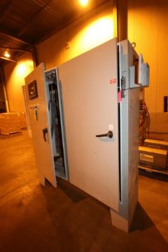 Double Door Control Cabinet, Includes (4) Allen Bradley PowerFlex 70 VFDs, Allen Bradley 13-Slot PLC Rack, SLC 5/04 CPU, with Allen Bradley Paniel View 900 Touchscreen Display, Overall Dims.: Aprox. 92" L x 27" W x 87" H (LOCATED IN BROCKPORT, NY) (NOTE: SUBJECT TO CONFIRMATION)