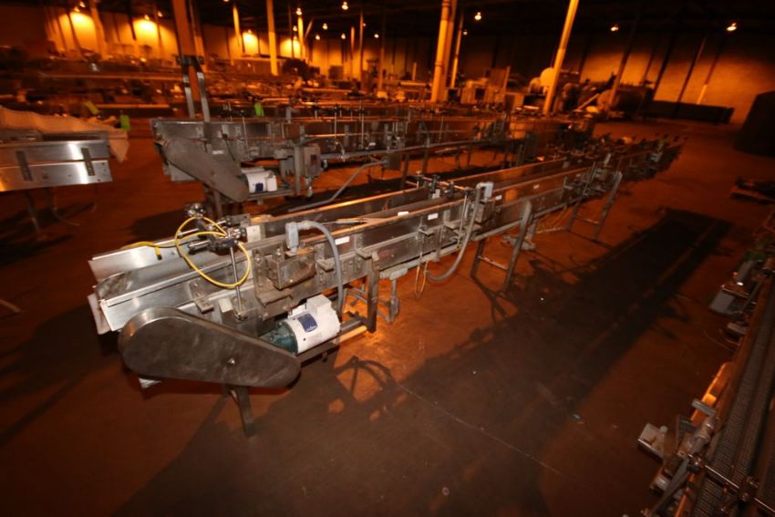 4-Sections of Dual Lane S/S Conveyor, Aprox. 23" L with Drives, Belt Width: Aprox. 5" W Lanes (LOCATED IN BROCKPORT, NY) (NOTE: SUBJECT TO CONFIRMATION)