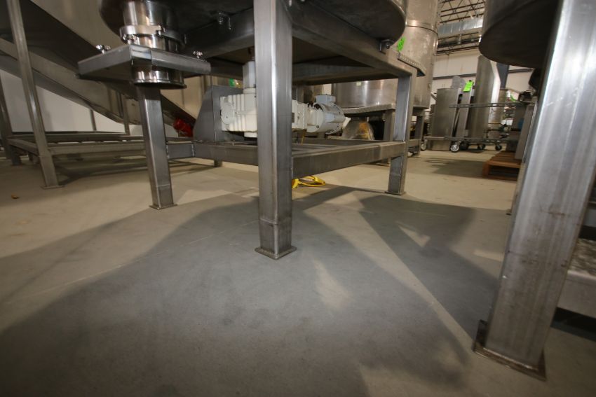 Axiom Aprox. 350 Gal. S/S Single Wall Tank, Mounted on S/S Frame with Fork Inserts, Bottom Mounted Drive, Tank Dims.: Aprox. 47" Tall x 47" Dia. With Bottom Plastic Agitation (LOCATED IN YOUNGSTOWN, OH) (Rigging, Handling & Site Management Fee: $150.00)