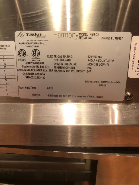 Structural Concepts Harmony Refrigerated Dual Service Merchandizer Case, Model HMBC-2, S/N 0969020 FU316907, 26 3/4" W x 34 1/8" D x 56 1/4" H (Located at 6300 Northway Mall Dr., Pgh., PA 15237)