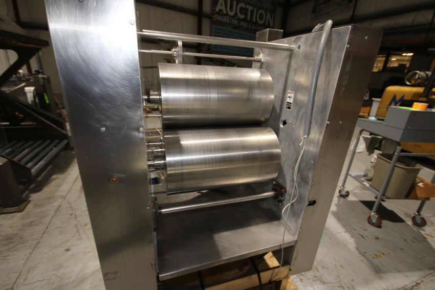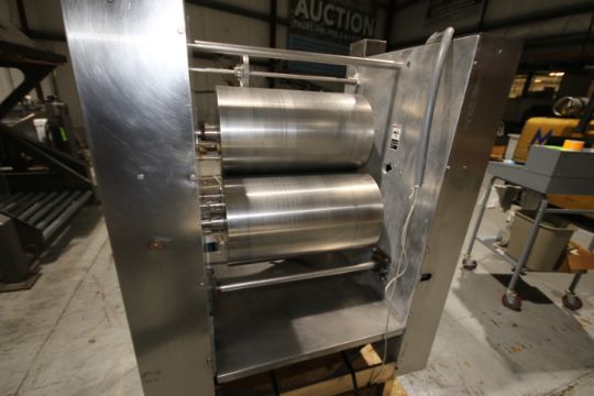 24" W S/S Sheeter, with Bottom Mounted Motor, with (2) S/S Infeed & Outfeed Conveyor Frames, Overall Dims: Aprox. 8ft L x 28" W (LOCATED AT M. DAVIS GROUP AUCTION SHOWROOM--PITTSBURGH, PA) (Rigging, Handling & Site Management Fee: $250.00)