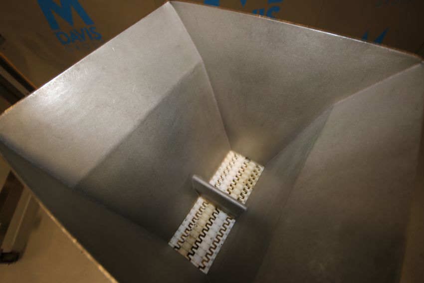 12" W S/S Depositor with (4) Rollers, 12" L x 14" H Hopper, Mounted on S/S Portable Frame (LOCATED AT M. DAVIS GROUP AUCTION SHOWROOM--PITTSBURGH, PA) (Rigging, Handling & Site Management Fee: $100.00)