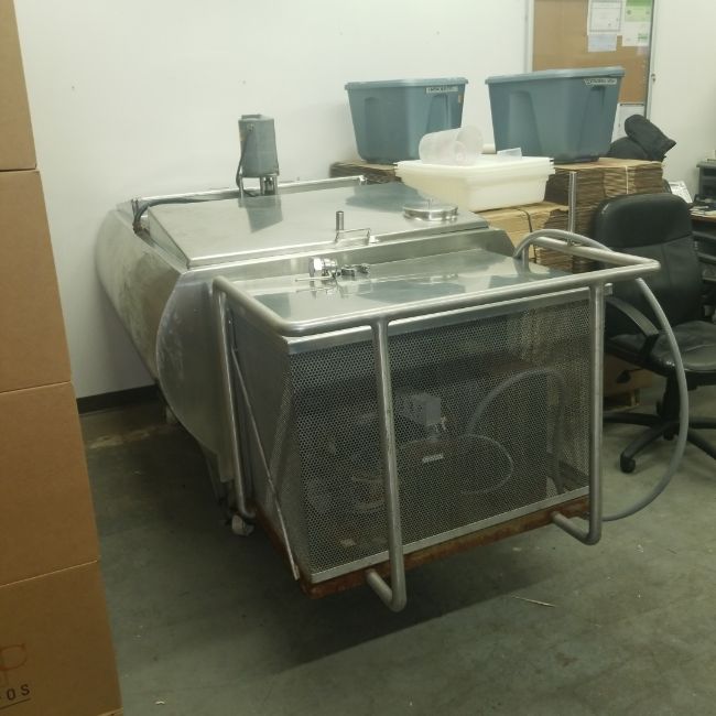 Mueller 300 Gal. Portable Freon Refrigerated Bulk Farm Tank with Push Handle, Mounted on Casters (NOTE: Freon Refrigeration Unit Mounted on One End of Tank) (LOADING FEE $175.00)