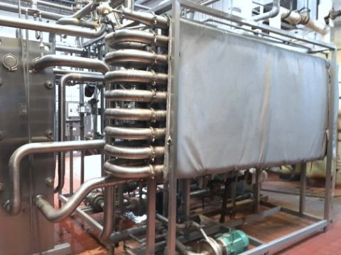APV R56 Skid Mounted 100 GPM HTST Pasteurization System, Equipment: Thermal Kill System, Project No: 112-00767, Year 2002, Setup for Juice at 100 GPM at 200 Degrees Fahrenheit, 460 Volt, 3PH, 60Hz, MAWP 200 PSIG, Includes APV R56 SH Plate Heat Exchanger, System Includes Heater Section, Regeneration Section, Pre Cooler, Cooler, Divert, Cooler, Holding Tubes for Pasteurization, Control and Steam Valves, 316 SS Plates and Fittings, High Pressure Pumps, Anderson Chart Recorder, 239 Degree Fahrenheit Max Operating Temperature, 289 Maximum Plates, Heater Transfer Area of 744.8 Square Feet, Allen Bradley SLC 5/05 PLC with PanelView Plus 100 Touchscreen, and Balance Tank (Located in North Carolina) (Note: Removal and Loading Fee $3,000.00)