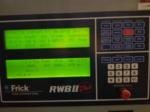 Frick RWB 40H Rotary Screw Ammonia Compressor, Model: RWB 40H, Serial: Serial: S0010BDMFLHAB3, R717 Refrigerant, 3600 Max RPM, 300 Max PSIG, Includes Electrical Controls (Located in North Carolina) (Note: Removal and Loading Fee $1,000.00)