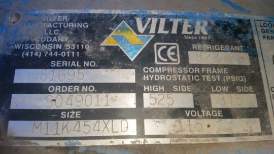 Vilter 454 Freon Compressor, Model: 454 XLD, Serial: 81695, Year: 2007, R22 Refrigerant Includes Enclosed Building with Frame, 60HP Motor (Located in North Carolina) (Note: Removal and Loading Fee $750.00)