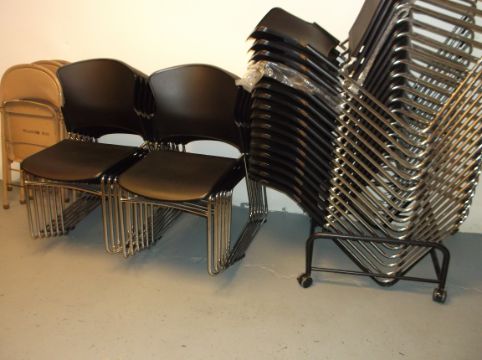 Black Stackable Chairs (LOCATED IN BEAVER FALLS, PA) (Rigging, Loading & Site Management Fee: $125)