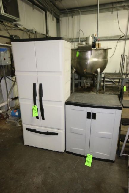 Lot of Assorted (2) Plastic Cabinets, with (2) Step Stools (LOCATED IN BEAVER FALLS, PA) (Rigging, Loading & Site Management Fee: $75)