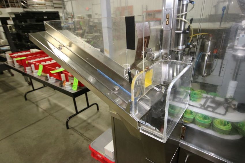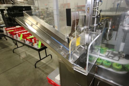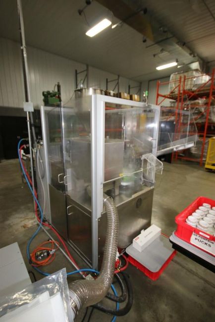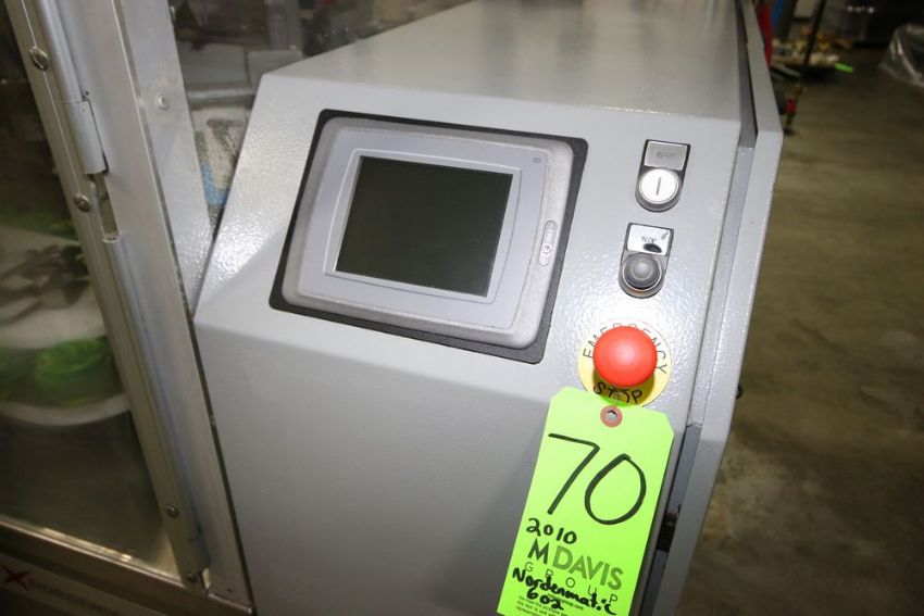 2010 Norden 18-Puck Tube Filler, M/N NORDENMATIC 602-HA, S/N S4801 & 54801, with S/S Feed Hopper & Jacketed S/S Hopper, with Norden S/S Filling Nozzel, with Controls Inlcuding Mitsubishi PLC, M/N FX3u-80M & Touchscreen Display, Includes (4) Operating Manuals, Set Up with (18) Aprox. 6.5m Tube Pucks with Teeth, Capable of Filling 4 FL.OZ. Tube, with (2) Spare Aprox. 6.5m Dia. Pucks, Includes Thermo Scientific Chiller, N/N Neslab Thermo Flex 2500, RGS Vacuum Dust Collector M/N E10214 (LOCATED IN BEAVER FALLS, PA) (Rigging, Loading & Site Management Fee: $1500)