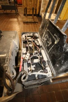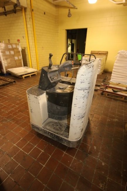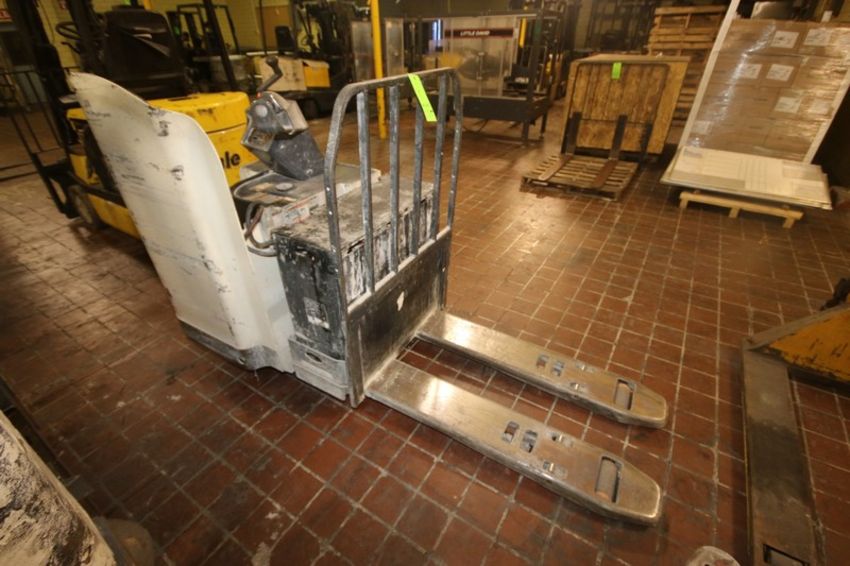 Crown 2,720 lbs. Ride-A-Long Electric Pallet Jack, M/N PR4500-60, S/N 6A282284, with 24 Volt Battery, Battery Type E, with Aprox. 48" L Forks with Cage, 4,445 Hrs. (RIEKES EQUIP. TEST RESULT: 17,888 Hrs.; Unit Powers Up/Lifts/Lowers/ Drives F & R; No Codes Present) (LOCATED IN GRAND ISLAND, NE) (Rigging, Handling, & Site Management Fee: $275.00 USD)