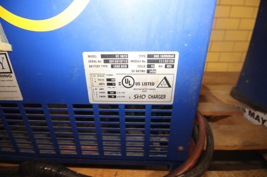 Infinity High Frequency Charger, M/N FC18/13, S/N 2013010712, Batt. Type: Lead Acid, 480 Volts, 3 Phase, with Gray & Blue Battery Connectors (LOCATED IN GRAND ISLAND, NE) (Rigging, Handling, & Site Management Fee: $50.00 USD)