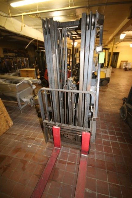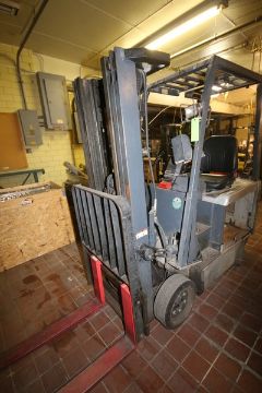 Nissan 2,250 lbs. Sit-Down Electric Forklift, M/N CK1B1L185, Chassis No.: CK1B1-00019B, with 3-Stage Mast with Side Shift, with Aprox. 42" L Forks with Cage (NOTE: Missing Battery--See Photographs)(RIEKES EQUIP. TEST RESULT: Unit Will Not Power Up & Fuction) (LOCATED IN GRAND ISLAND, NE) (Rigging, Handling, & Site Management Fee: $350.00 USD)