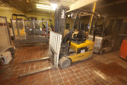 Yale 3,700 lbs. Sit-Down Electric Forklift, M/N ERP040THN36TE084, S/N F807N07420H, Battery Type EO, with 36 Volt Battery, with 3-Stage Mast & Aprox. 42" L Forks with Side Shift (RIEKES EQUIP. TEST RESULT: Unit Powers Up/Lifts/Lowers/ Drives F & R; Dash Does Not Work; Wrench Light Flashing) (LOCATED IN GRAND ISLAND, NE) (Rigging, Handling, & Site Management Fee: $350.00 USD)