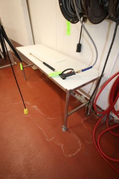 S/S Cutting Table, with Cutting Board Type Table Top Surface, Overall Dims.: Aprox. 6' L x 24" W x 35" H (LOCATED IN GLOUCESTER, MA) (Rigging, Handling & Site Management Fee: $125.00)