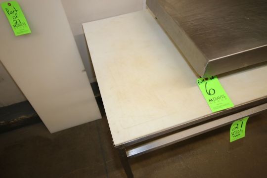S/S Cutting Table, with Cutting Board Type Table Top Surface, Overall Dims.: Aprox. 46-1/2" L x 32" W x 30" H, with (4) Spare Cutting Boards, Overall Dims.: Aprox. 39-1/2" L x 17-1/2" W (LOCATED IN GLOUCESTER, MA) (Rigging, Handling & Site Management Fee: $50.00)