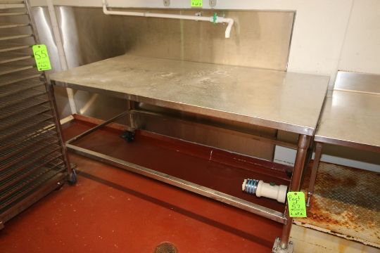 S/S Tables, Overall Dims.: Aprox. 48" L x 30" W x 33-1/2" H; Aprox. 72" L x 36" W x 36-1/2" H, Mounted on Wheels, & Aprox. 50" L x 28-1/2" W x 32-1/2" H (LOCATED IN GLOUCESTER, MA) (Rigging, Handling & Site Management Fee: $150.00)