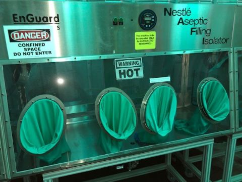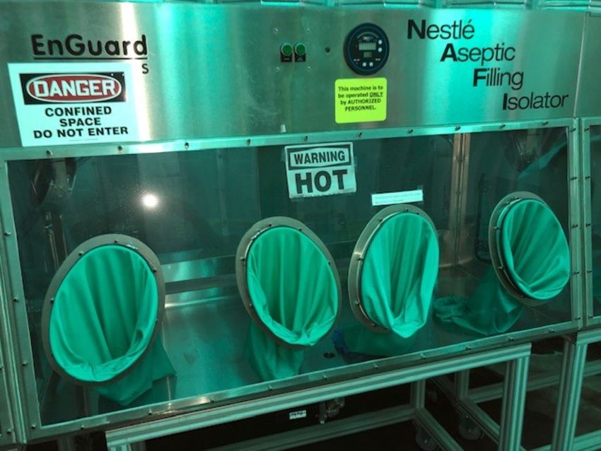 Containment Technologies Group 4-Station Stainless Glove Box, Model ENGUARD, S/N 1210-NG-1040, Mounted on Portable Aluminum Stand includes Steris VHP P1VS, Overall Dims.: Aprox. 12 ft. L x 26" W x 42" H (LOCATED IN MDG AUCTION SHOWROOM--PITTSBURGH, PA) (For Packaging & Loading Quote, Contact Pak Mail at: customerservice@pakmailpittsburgh.com)