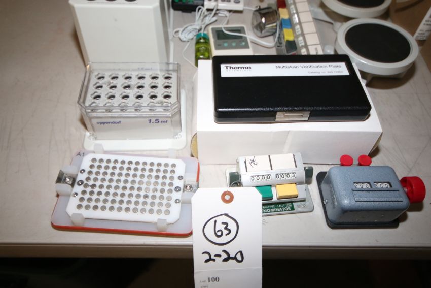 Lot of Assorted Lab Support Equipment, Include Supelco Lab Top Vacuum Chamber, (3) Eppendorf 15 mL Test Tube Heaters, Thermo Scientific Multiskan Verification Plate, VWR Timers, Counters & Stands (LOCATED IN MDG AUCTION SHOWROOM--PITTSBURGH, PA) (For Packaging & Loading Quote, Contact Pak Mail at: customerservice@pakmailpittsburgh.com)