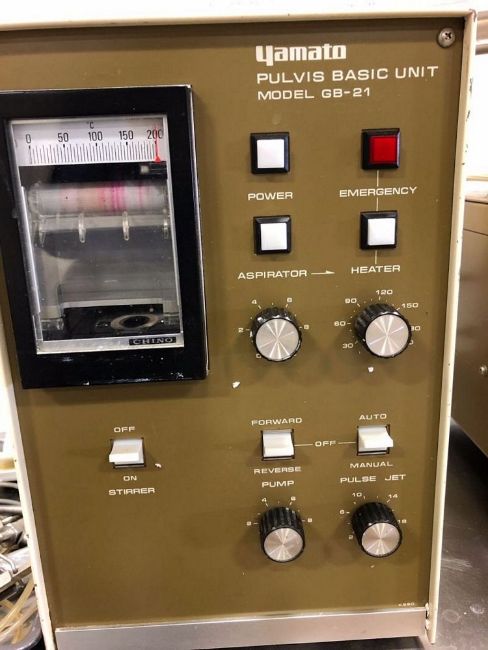 Yamato Pulvis GB-21 Pilot Scale Fluid Bed Dryer/Granulator. 220 Volt, 50 Hz, 18 Amps. Machine comes with Product Chamber and Spray Wand. (As shown in photos)(Located in Central NY)