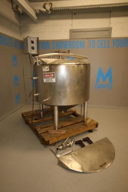Cherry-Burrell Aprox. 250 Gal. S/S Processor, Cone Bottom with S/S Hinge Lids, Includes S/S Plug Valve, with S/S Sweep Agitation, Internal Tank Dims.: Aprox. 29" H x 48" Dia., Mounted on S/S Legs (NOTE: Missing Agitation Motor) (IN#69217)(LOCATED IN MDG AUCTION SHOWROOM--PITTSBURGH, PA) (Rigging, Handling & Site Management Fee: $250.00)