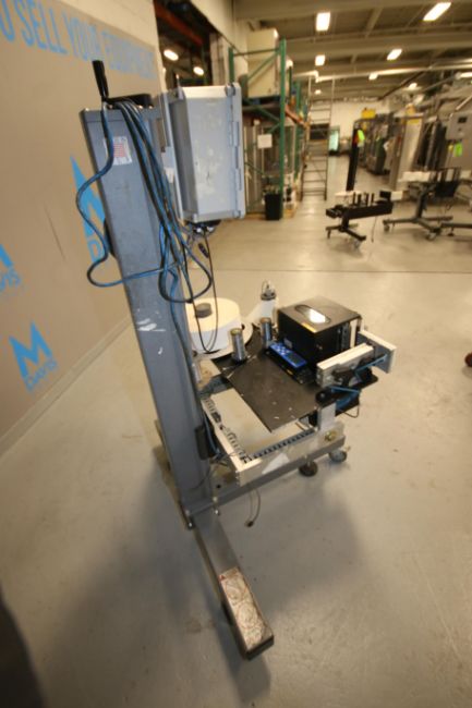 Sato Print & Apply Roll Fed Labeler, M/N S8408RD, S/N 4H032411, Mounted on Portable Stand, 110V (IN#66675)(LOCATED IN MDG AUCTION SHOWROOM--PITTSBURGH, PA) (Rigging, Loading & Site Management Fee $75.00)