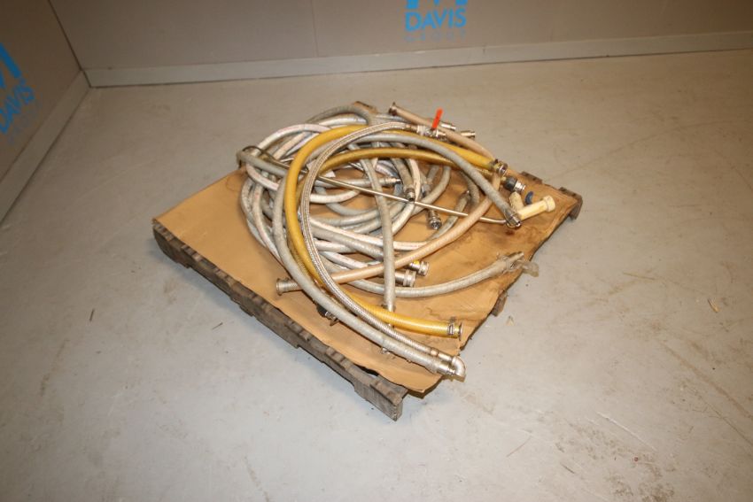 Lot of Assorted Transfer Hoses, Length Ranging From Aprox. 66" -75" L, Assorted S/S Inlet/Outlets, with Hose Spray Nozzel(IN#66796)(LOCATED IN MDG AUCTION SHOWROOM--PITTSBURGH, PA) (Rigging, Loading & Site Management Fee $50.00)