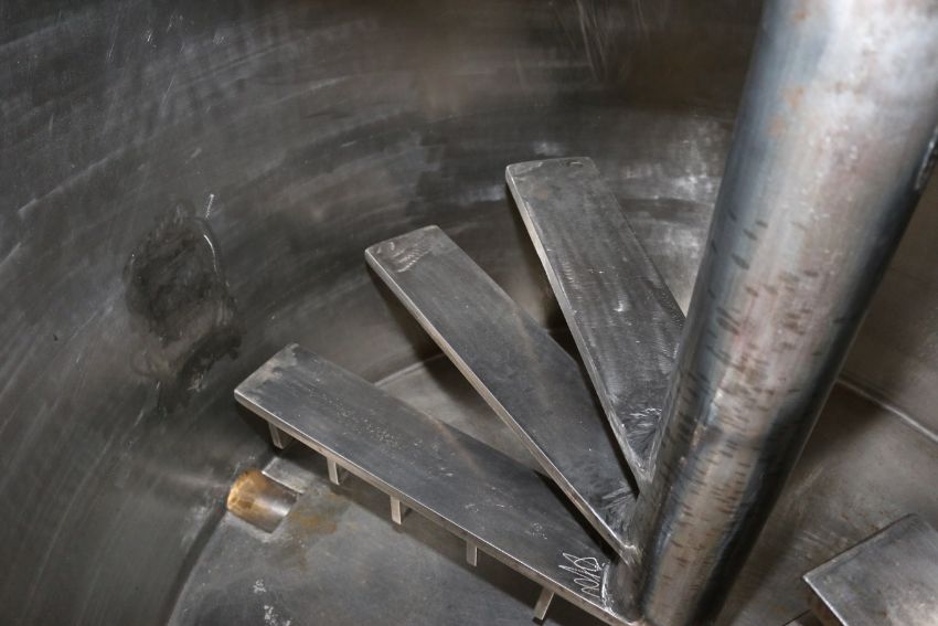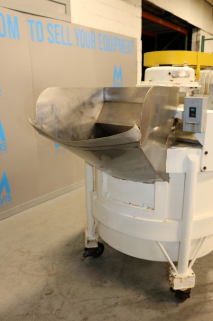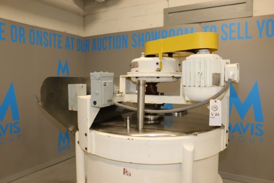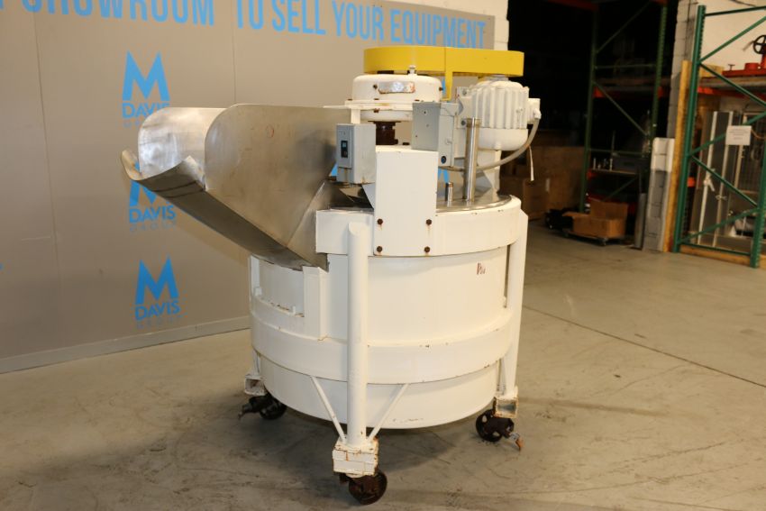 Aprox. 250 Gal. S/S Chopper Tank, with 3 hp Agitation Motor, 1750 RPM, with S/S Infeed Chute, Painted Exterior, Tank Dims.: Aprox. 35" H x 48" Dia., Mounted on Casters (IN#70239)(LOCATED AT M. DAVIS GROUP AUCTION SHOWROOM--PITTSBURGH, PA) (Rigging, Handling & Site Management Fee: $250.00)