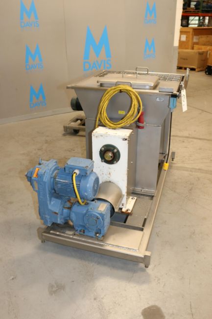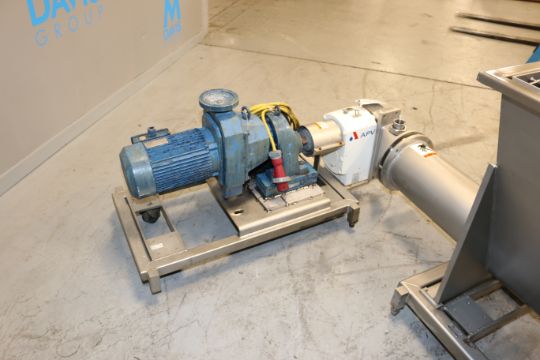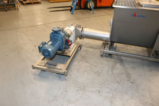 APV S/S Ribbon Blender & Auger Feeder, S/N K-0784, with Aprox. 9" Dia. S/S Auger & Discharge, with SEW 3.5/4.5 Drive, 1700 RPM, Mounted on S/S Portable Frame, Includes APV 7.5 hp Positive Displacement Pump, M/N R4BR1HD, S/N K-0785-94, with 1730 RPM Motor, 230/460 Volts, with Aprox. 3" Thread Type Inlet/Outlet with Aprox. 9" Dia. Centrifugal Inlet/Outlet, Mounted on Portable S/S Frame (IN#70238)(LOCATED AT M. DAVIS GROUP AUCTION SHOWROOM--PITTSBURGH, PA) (Rigging, Handling & Site Management Fee: $300.00)