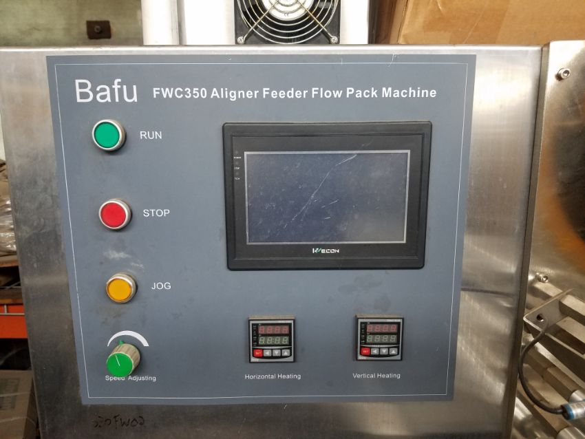 Bafu FWC3500 Aliger Feeder Flow Pack Machine, In and Out Conveyors (4-Pieces) (Located Fort Worth, TX) (LOADING FEE: $50.00 USD)