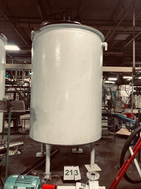 2000 Gallon Mild Steel Jacketed Mix Tank with scrape type mixing arms driven by a 5HP motor and belt driven gear box. Flat Top Split Lid on Top, Dish Bottom, 3" drain at bottom. Total height 14 ft. -(LOCATED IN IOWA) requires flatbed to load. Loading fee $200
