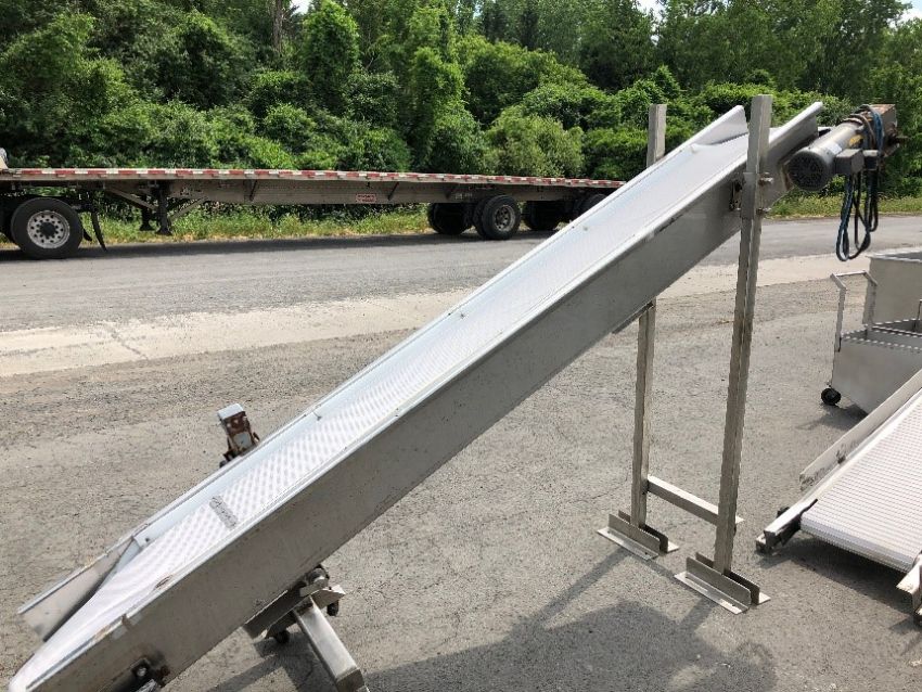 11'~12" W S/S Incline Conveyor with PVC Rough Toup Belt, Adjustable Back and Front Legs for Height, 1 hp Motor with Gearbox (Located Port Byron, NY)