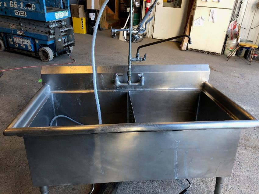 48" / 24" - 14" Deep S/S Double Sink with Shower Rinse Hose (Located Port Byron, NY)