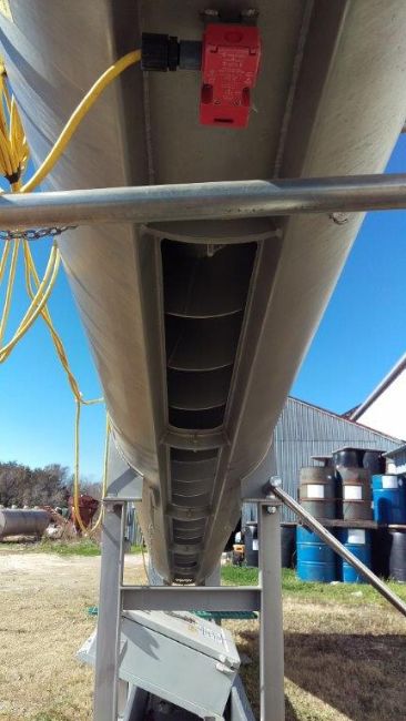 2008 FPEC Screw Auger Conveyor Model SCL930, U-Trough with cooling jacket, 18" x 17" Inclined Screw, Aprox. 9" Flites, 304SS Teflon Bushing Bearings,Aprox 9' L S/S Cover Over Inclined Section of Trough, Aprox. 18" x 9' Horizontal Hopper, 18" Sq. Flange, 3 hp Drive, Gearmotor via Chain, 30 RPM (Shipping Size 2' W x 7' H x 18' L, Aprox. Weight 1,000 lbs.) (Inventory #1271965) (Located in Rosharon, TX)