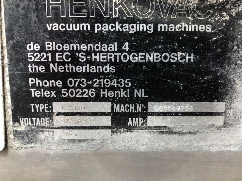 Henkovac Bag Sealer, Type H.2000, Machine #209040765, with 19" / 19" Chamber, 208 V, 3 Phase (Located Port Byron, NY)