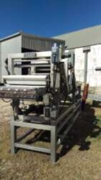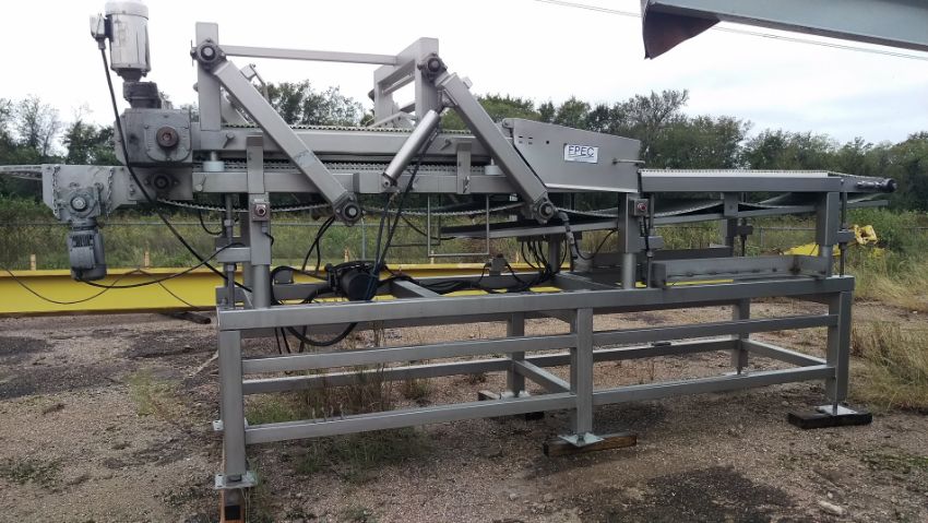 2008 FPEC 40" Mega Meat Press Dual Belt, Compression, Dual Flat and Parallel, Rigid Hinged Section Conveying Belts, One Arranged Over the Other with Hydraulically Adjusted Variable Gap, Squeezes Product Between Surfaces. Food Service, Good for Meats, Candies, Baked Products, Belt Width 34", Belt Length 18", Poly-San .304SS, Dual Flattening, Configuration is Horizontal 1100 Series White Polyproylene Flat Top Intralox Belts, Upper and Lower, Wire Mesh Transfer Belt at End with (2) 2 hp, 1750 RPM Wash Down S/S Sheathed WEG Motor, Boston Gearmotor (Shipping Size 4' W x 6' H x 20' L, Aprox. Weight 2000 lbs.) (Inventory #1271964 (Located in Rosharon, TX)