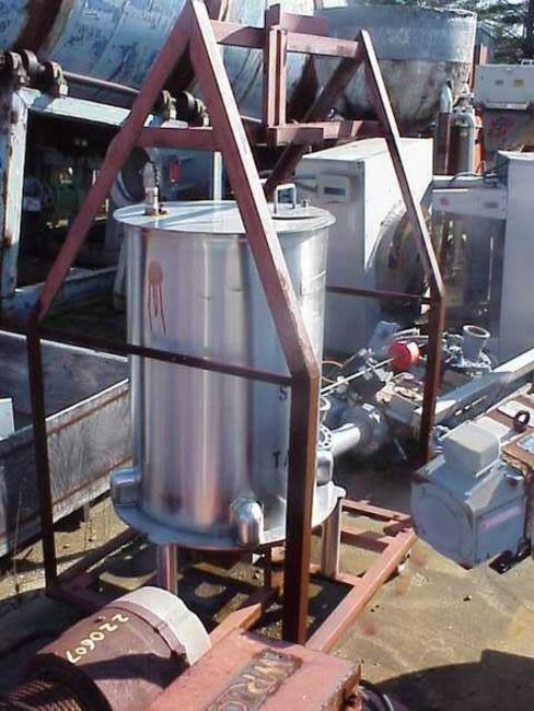 United Utensils Co (UTENSCO) 65 Gal S/S Tank, S/N 02008-3 with Material 304SS, Bottom Mounted 3 hp Grinder Pump, 40:1 Gear, Mounted in CS Frame on Wheels, 2' Dia. x 3' L/H (Located Pedricktown, NJ) (Load Fee $65.00)