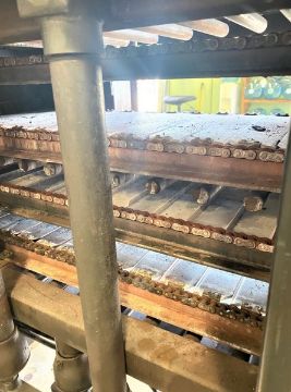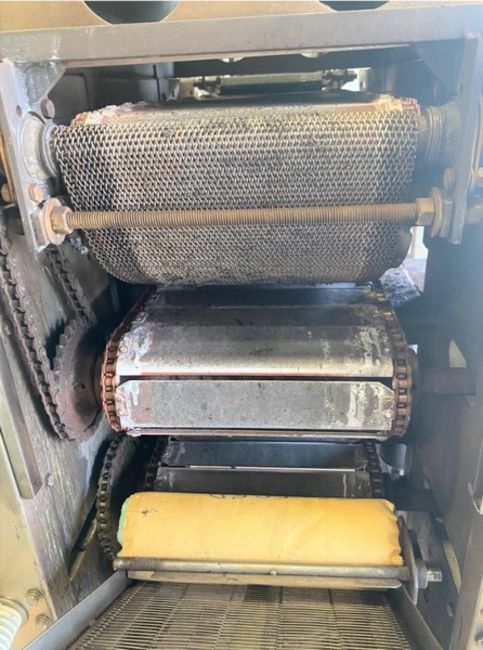 FOR IMMEDIATE SALE! JC Ford Corn Tortilla Oven, Model T0 1100, S/N T0960103, Electric 230 V, 3 Amps, Gas: Natural Gas, 200K BTU, Metal Belting, Machine is 36" W so Roller Width Would possible be 24" or so, Dimensions 106" x 36" x 5'. Very low hour demo oven. Previously made 8" tortillas.(Located Orlando, FL)
